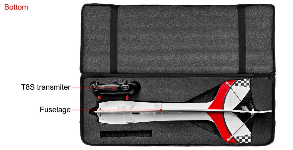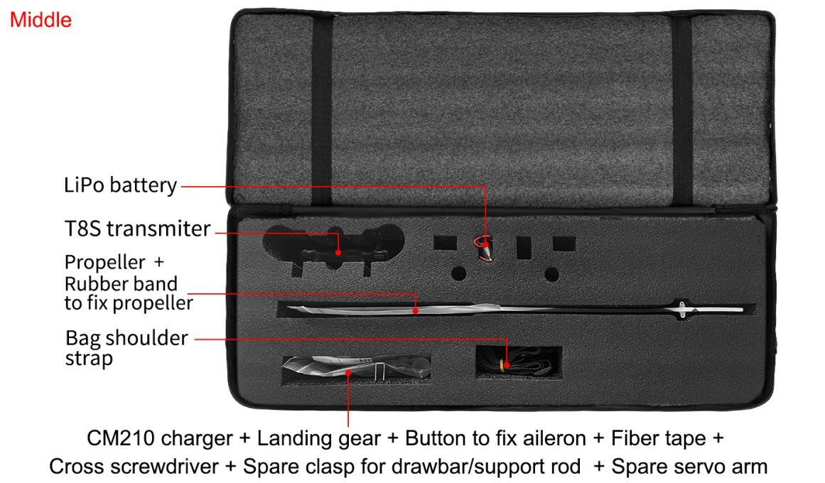 All electronic components of A560 are already set. If it’s the RTF version(with transmitter T8S and receiver packed), all you need to do after unpacking the box is to assemble the wing, and then fly it.