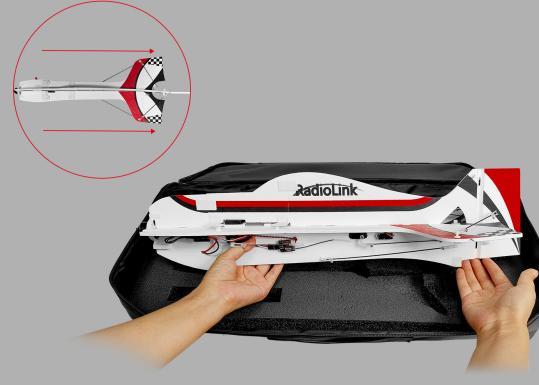 ③when packing the fuselage in the bag, please keep all drawbars and support rods parallel to the fuselage to avoid damage to the drawbar/rod caused by improper placement.