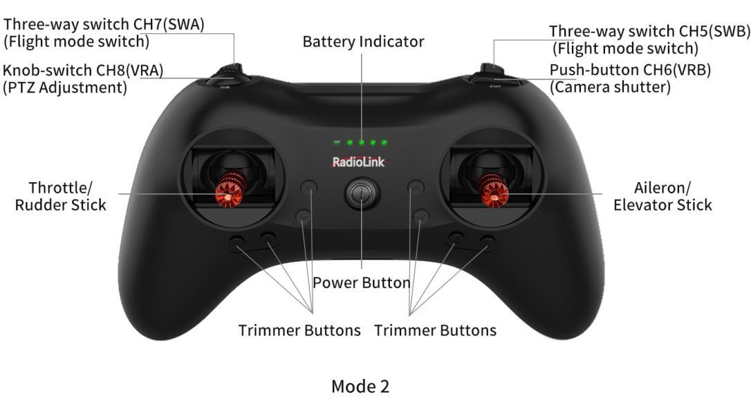 Note: If it is the PNP version(without transmitter T8S and receiver packed), please follow the instruction manual of A560 to set channel 5 and channel 7 in your transmitter.