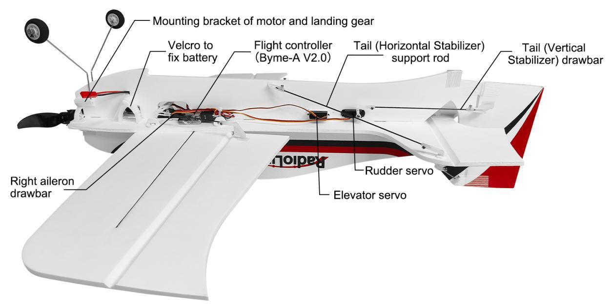 Arrange all the spare parts and put them into the bag in turn. Keep all drawbars and rods parallel to the fuselage when packing it. Please see Note③
