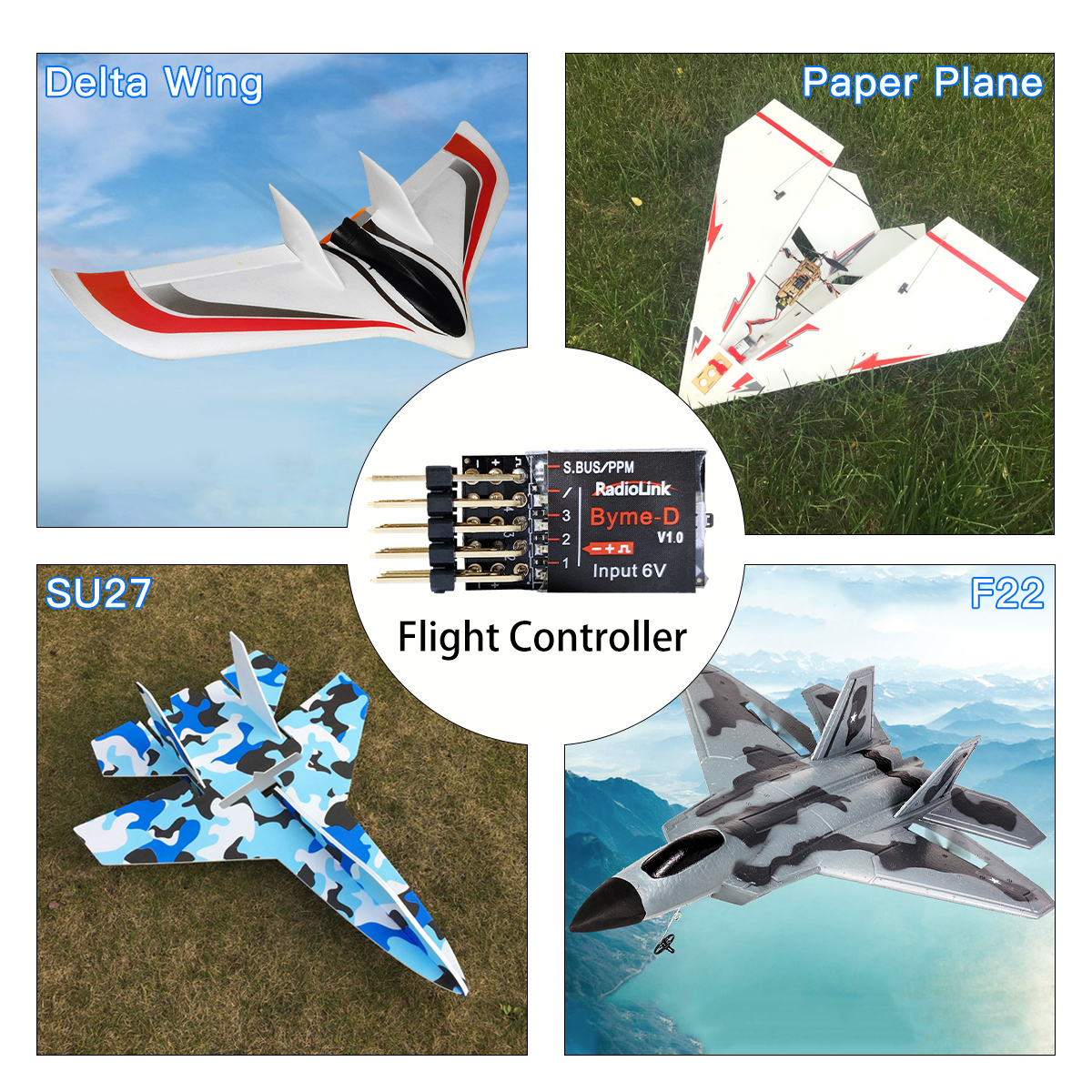 Applicable to all model airplanes with mix elevator/aileron controls including delta wing, paper plane, SU27, F22.
