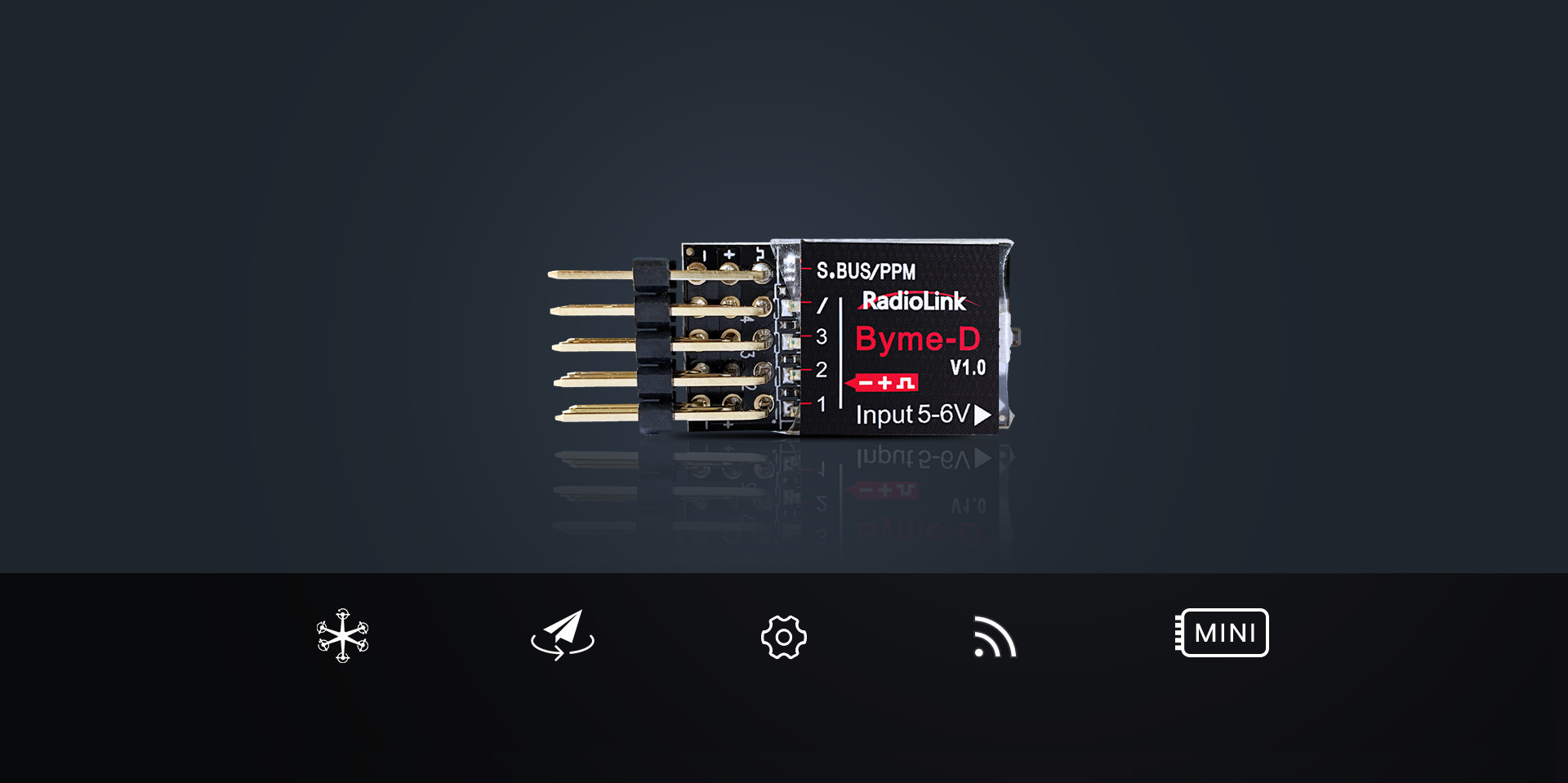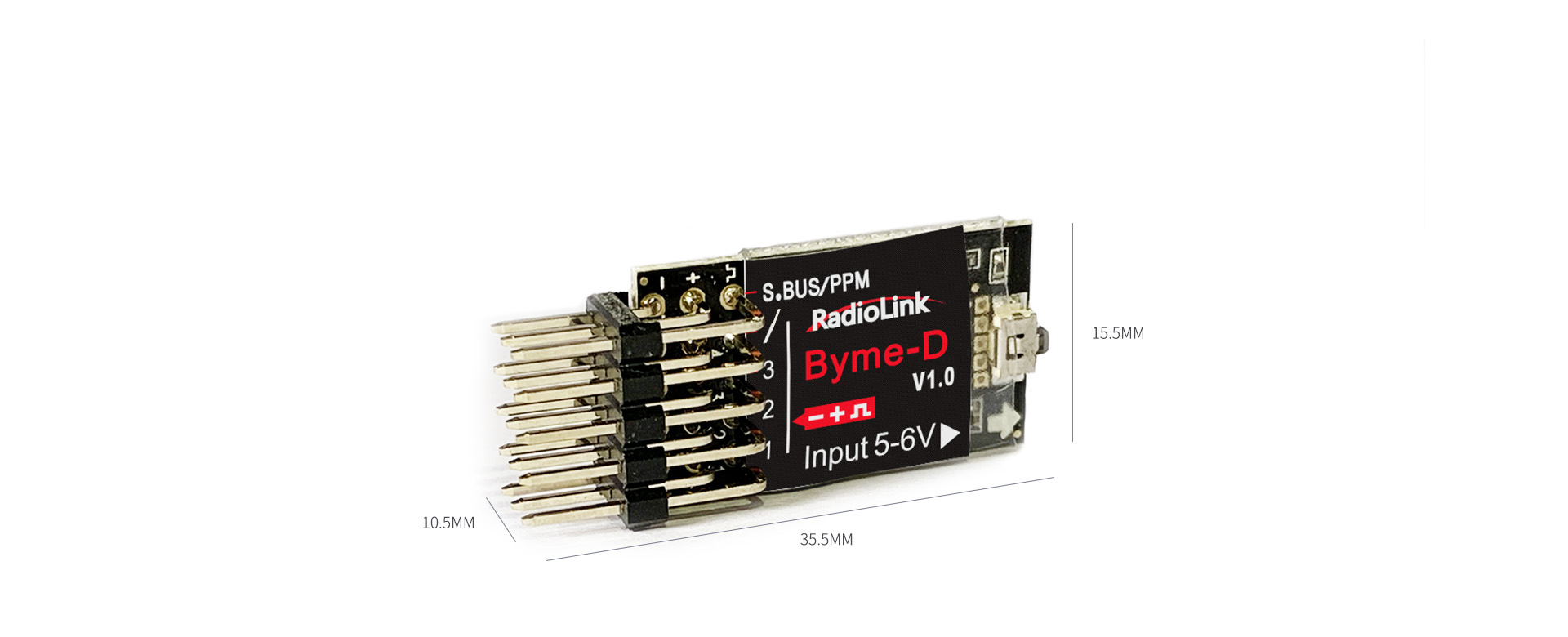 Byme-D is tiny with a total weight of 4.5g, including wires. Even small indoor models can have it installed without extra burden for longer flight time.