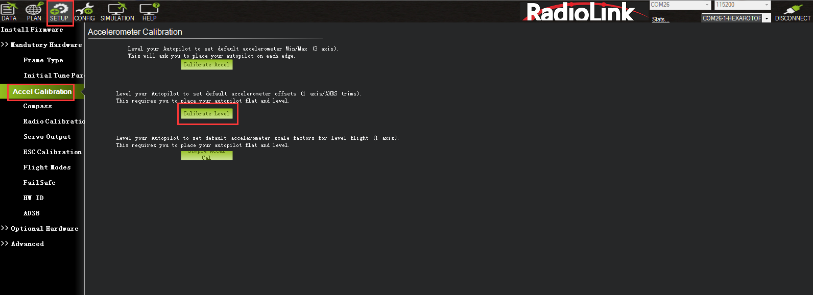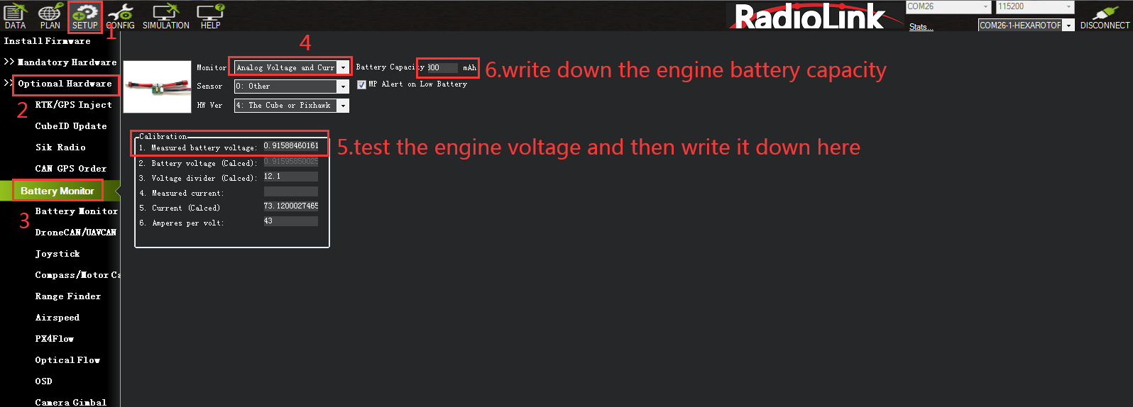 You need to connect the receiver first and then you can calibrate the radio. For details on receiver connection, please refer to Chapter 5.2.3.