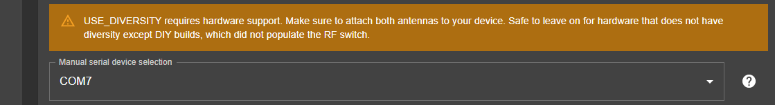 Set the device options. Since we are using dual-antenna diversity, we need to check USE_DIVERSITY; otherwise, it will defaults to single antenna.