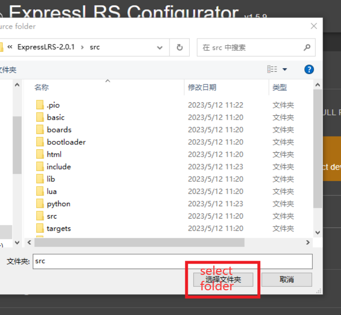 Click “CHOOSE FOLDER” to select the file path to be compiled. Please note that you need to enter the src folder. Otherwise, compilation will not be successful.