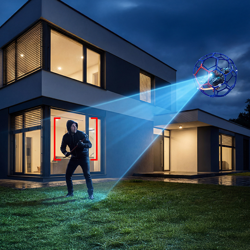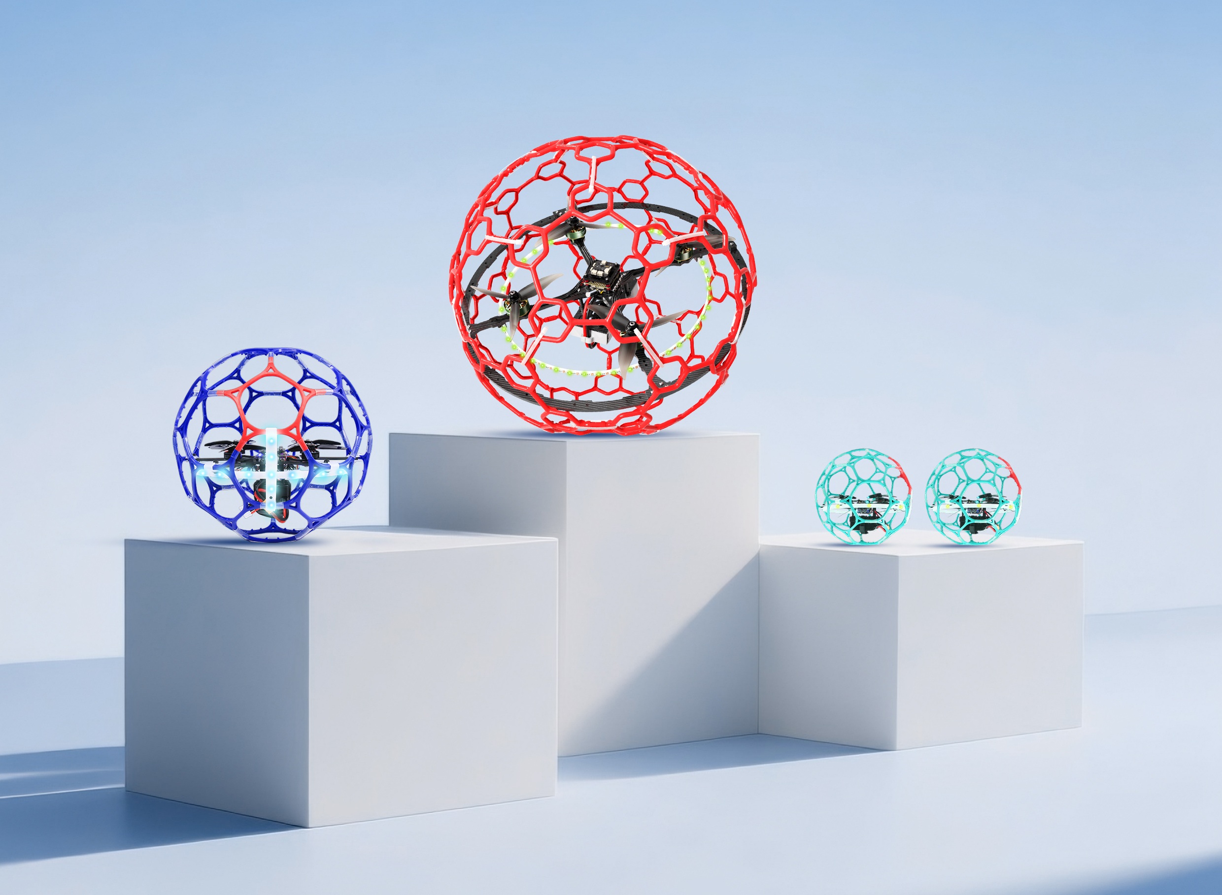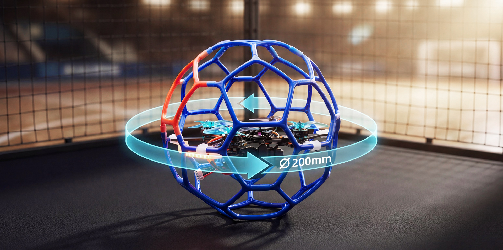Unlike traditional racing drones with exposed propellers, the drone soccer aircraft features a fully enclosed protective frame made of high-toughness materials. The 360° shielding design eliminates propeller risks, ensuring zero injury during training and competition.