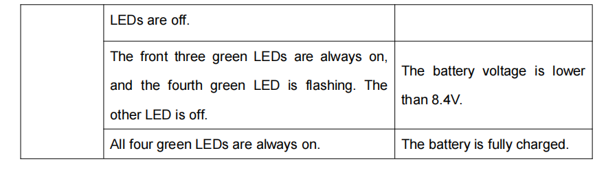 When all four LED indicators turn solid green, the battery is fully charged, and the charger will automatically stop charging.