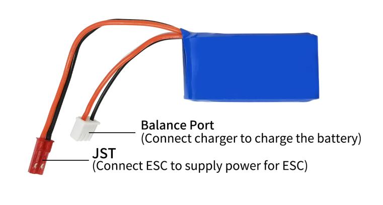 SU27 supports a 2S-3S LiPo battery. SU27 is packed with 2S 7.4V 600mAh LiPo Battery.