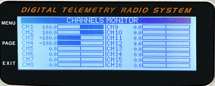 Take an open-source transmitter as an example. The servo display of channel 1 to channel 4 when calibrating the attitude successfully is as shown below: