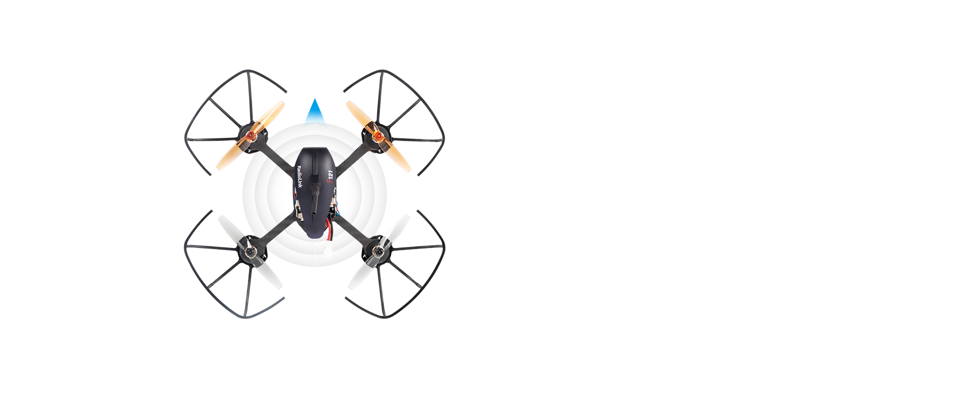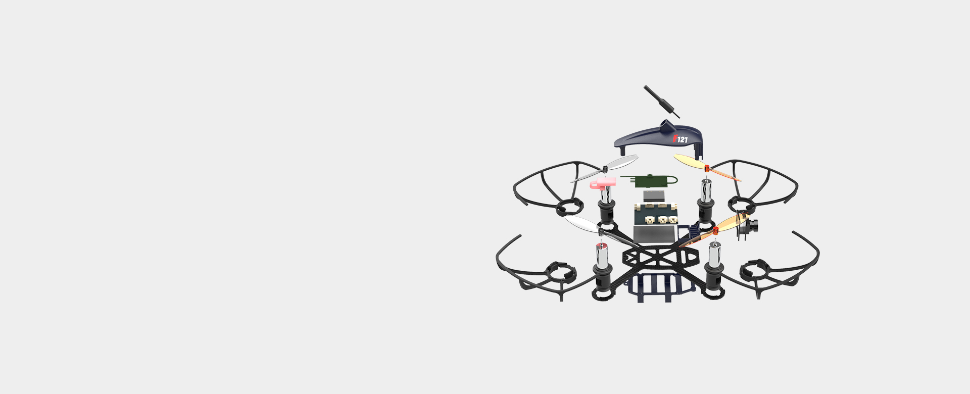 F121 can be thrown and starts to fly at any angle. A fixed head without a compass means the head of F121 always remains the same direction if the rudder stick is not moved. Otherwise, it will change according to the rudder stick. Move with a simultaneous response, F121 makes every beginner flight like a master.