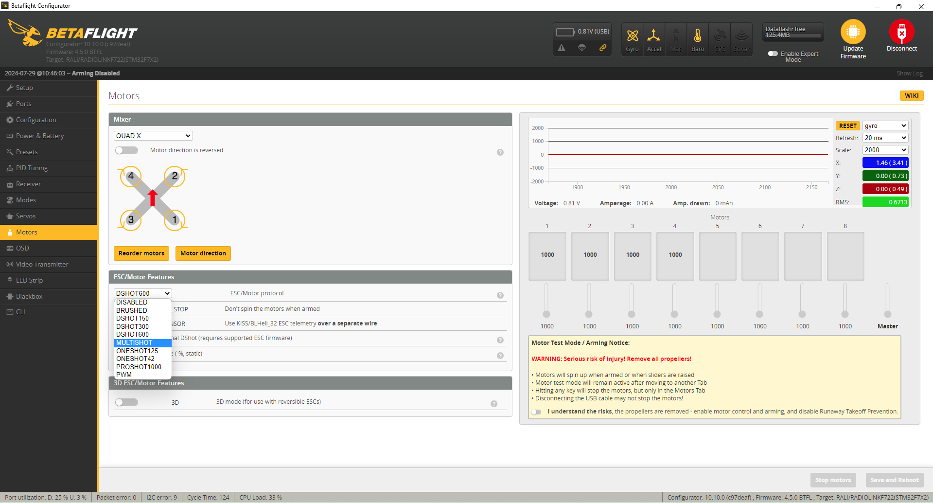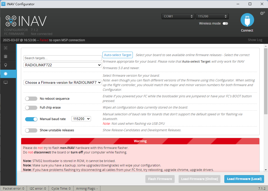 * The Betaflight team is reviewing the firmware for Radiolink F405. Currently, only the Radiolink firmware can be loaded from Betaflight Configurator
