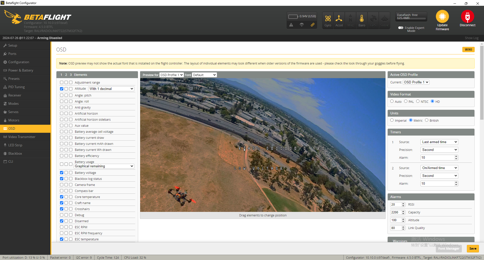 while monitoring critical parameters such as voltage and attitude in real time through the OSD interface.