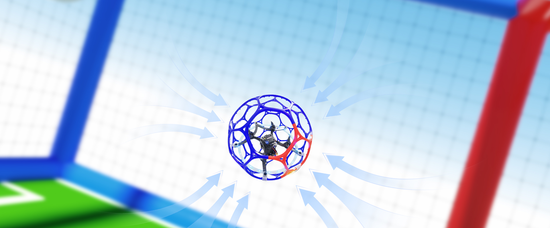 Unlike fixed-wing or FPV drones, which require large open spaces, the international drone soccer arena only needs an area of 14x7x5 meters(Recommended competition cage size for 200mm drone soccer aircraft: 6 × 3 × 3 meters). Even a corner of a school campus can be transformed into a competitive arena.