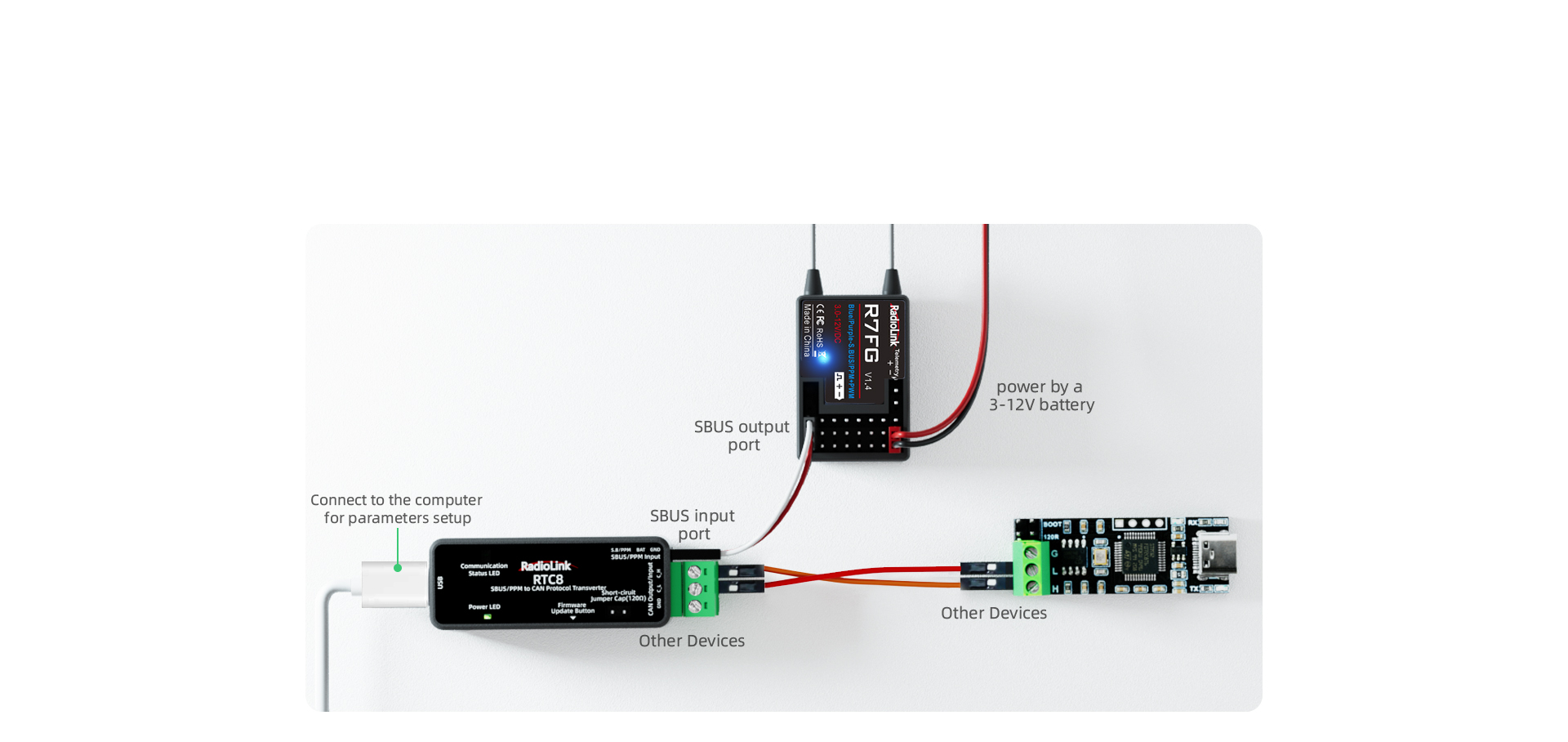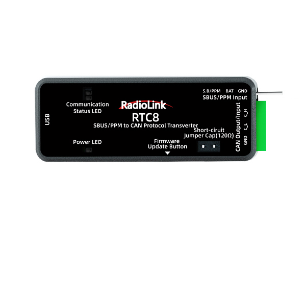 RTC8, with dual signals that SBUS and PPM signals can be identified and converted automatically, is suitable for most remote controls.