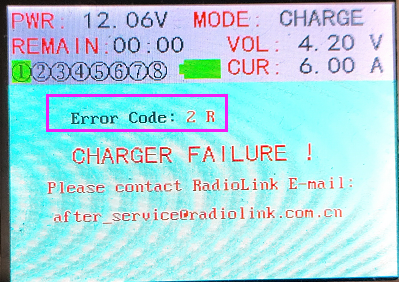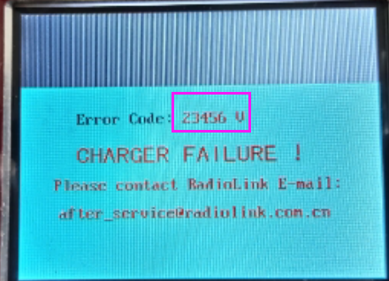 Note: After the calibration, you need to check whether power supply voltage and battery voltage are consistent with the actual calibration value. If there is a big difference in the voltage value, you need to re-calibrate the charger with a multi-meter.Q: After upgrading the newest firmware, an error code shows **V (such as 3V, 145V, 23456V). What does error code **V mean?
