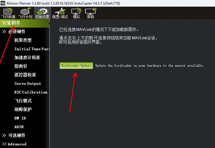 ② 出厂日期为2023.8.16号前的CrossFlight在升级完2023.8.16号发布的固件且在地面站更新bootloader后支持通过乐迪地面站和开源地面站升级固件。
