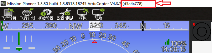 无法知晓出厂日期的用户,可通过连接CrossFlight至地面站,地面站顶部固件版本号后有(d5a4c778)的即为出厂日期为2023.8.16号之后的CrossFlight。