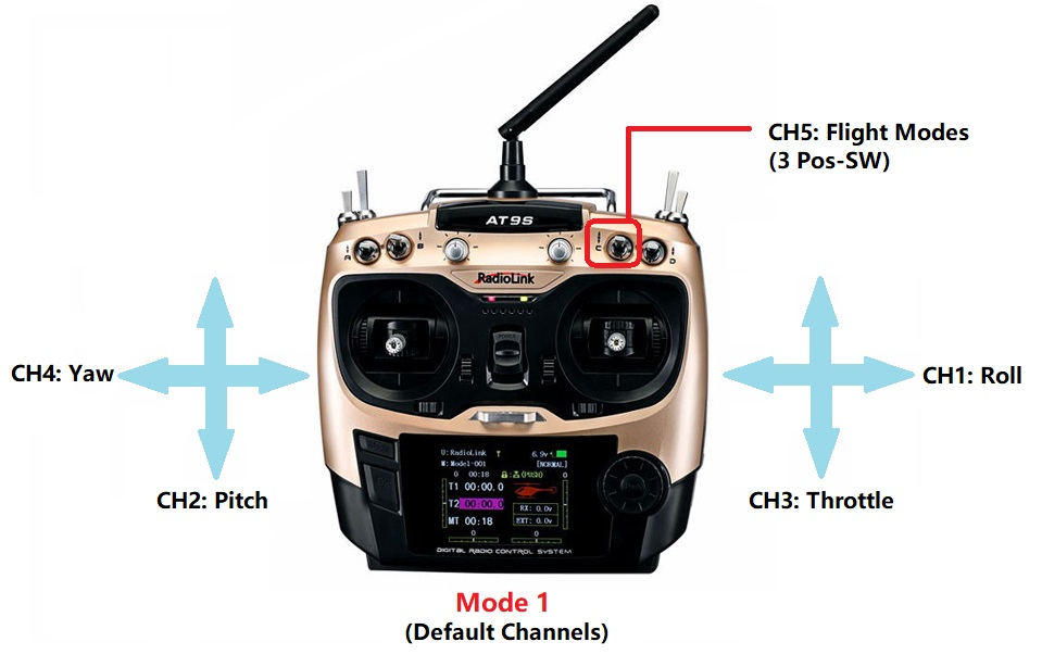 Setup RC transmitter flight mode.