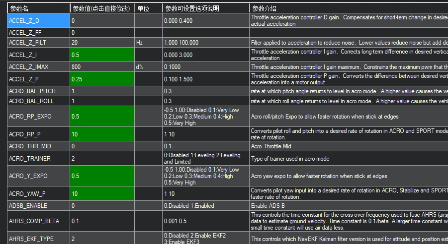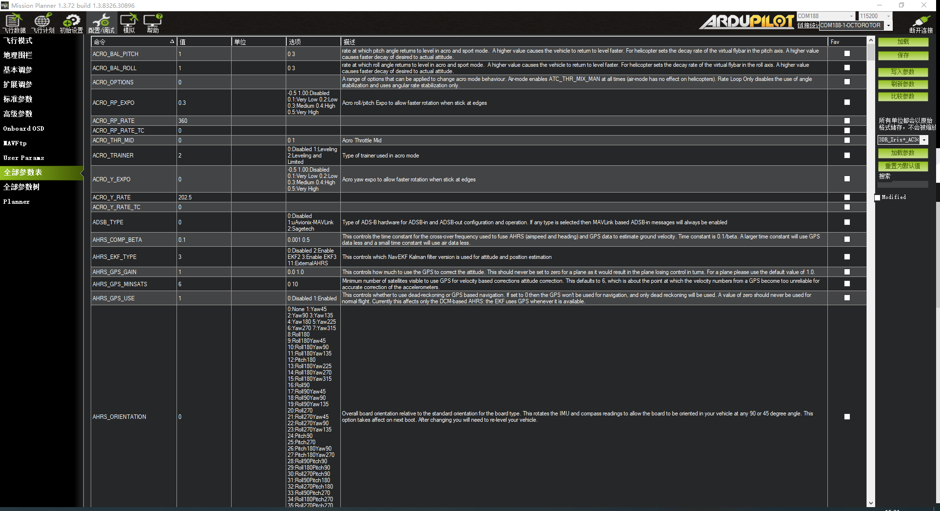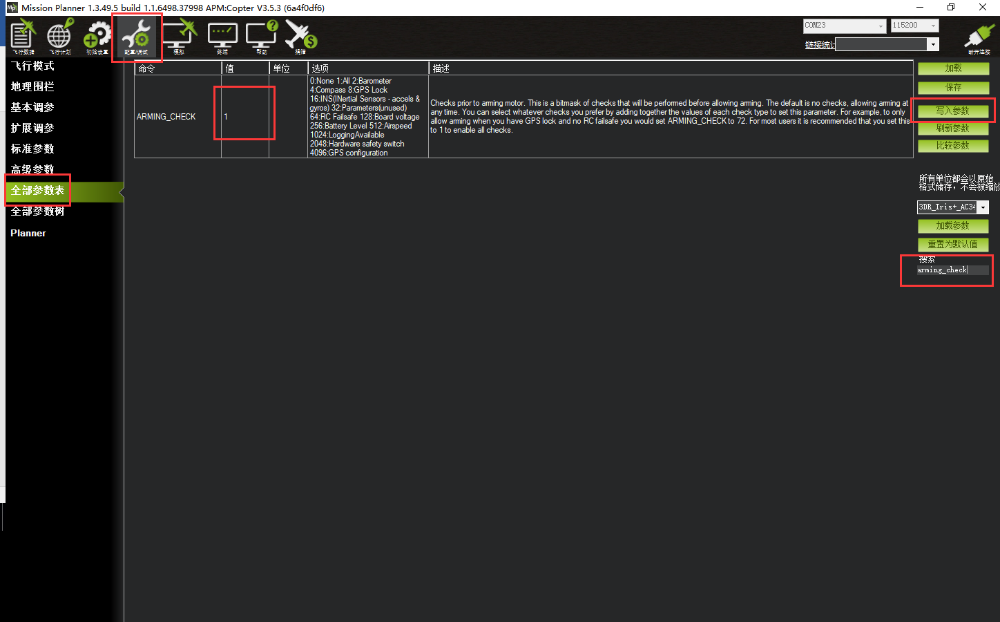 飞控所有设置都可以通过参数中来设置,所以知道怎么修改参数对于飞控使用很重要,进入全部参数界面后可以按以下步骤修改;