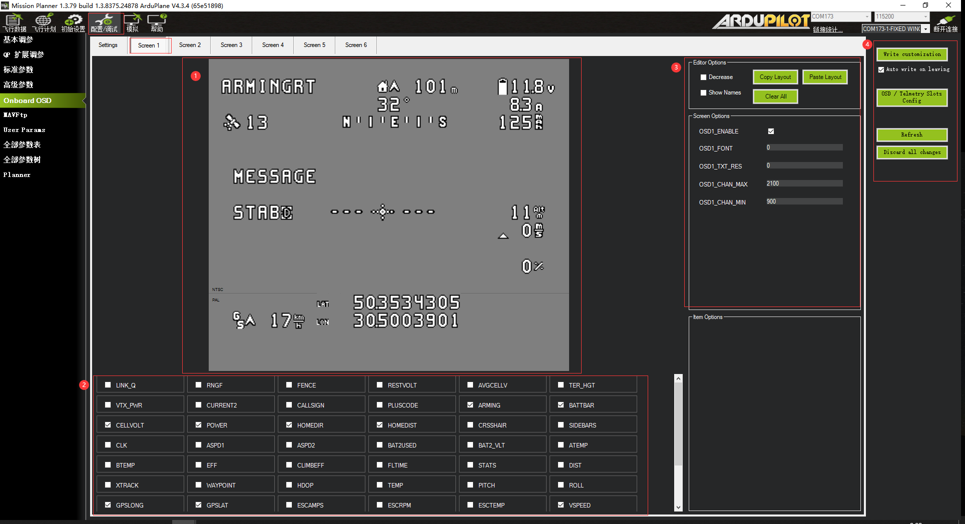 OSD_TYPE 1表示使用的OSD芯片为 MAX7456