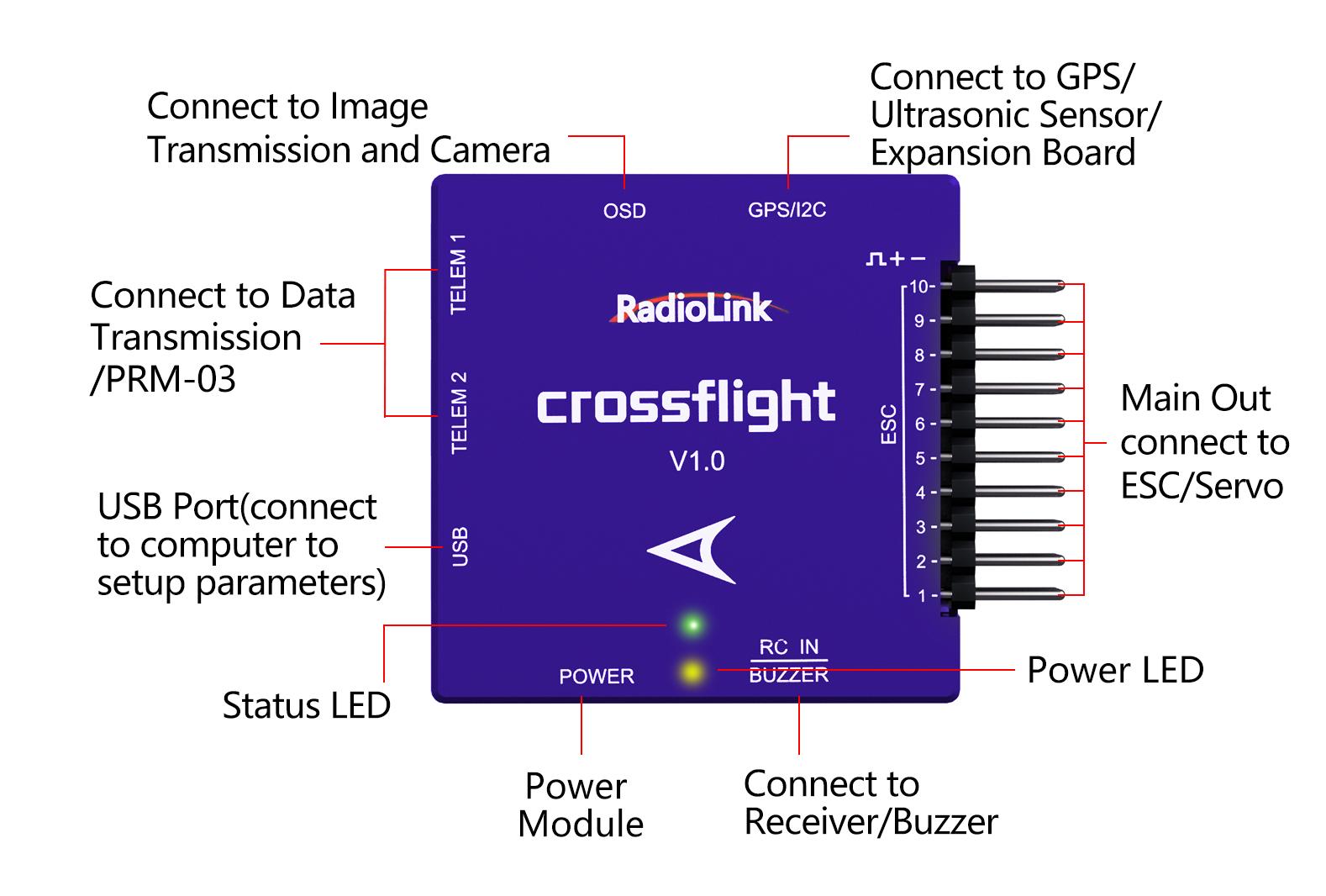 * crossflight can only upgrade the firmware by RadioLink Mission Planner, and can only upgrade the firmware from RadioLink. The default firmware of crossflight is for Multicopter.