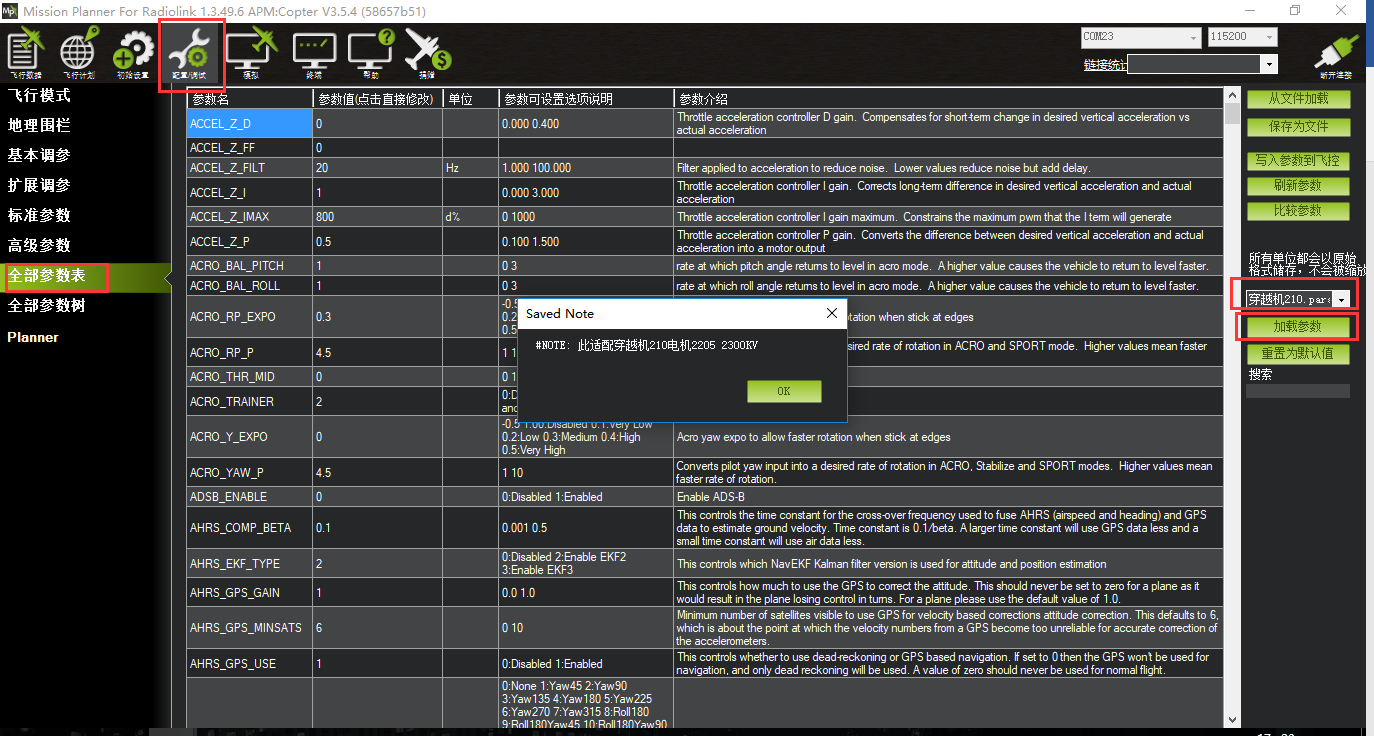 针对个人普通用户参数设置麻烦问题,我们修改,添加了服务器下载参数,后期会慢慢增加一些飞行良好机架的参数供大家下载使用,当大家调整好参数时候也可以通过假如我们官方QQ群上传你的配置和飞控参数分享给大家使用