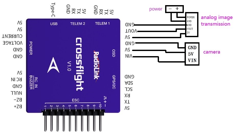 A: For analog FPV, no need to set crossflight. Just follow the below diagram to connect them: