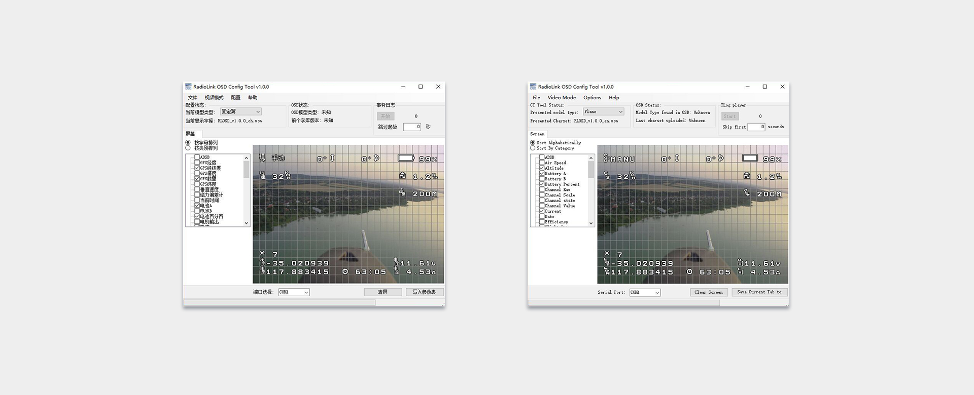 English/ Chinese parameter setup software, users can personalize flight parameters display layout and font style.