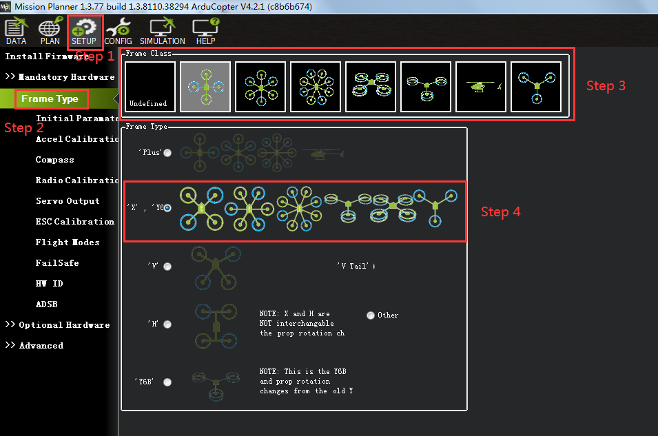 1. Install firmware: It is to flash the firmware online. Click the model icon in this interface, and MP will automatically download the firmware and upload it to the flight controller.