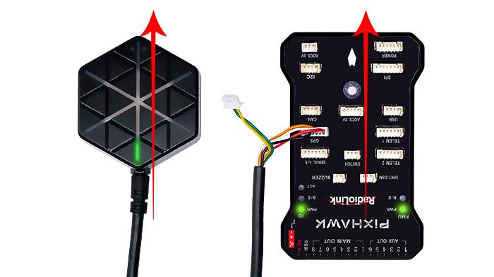 3. On the PIXHAWK the RGB LED will start flashing green.