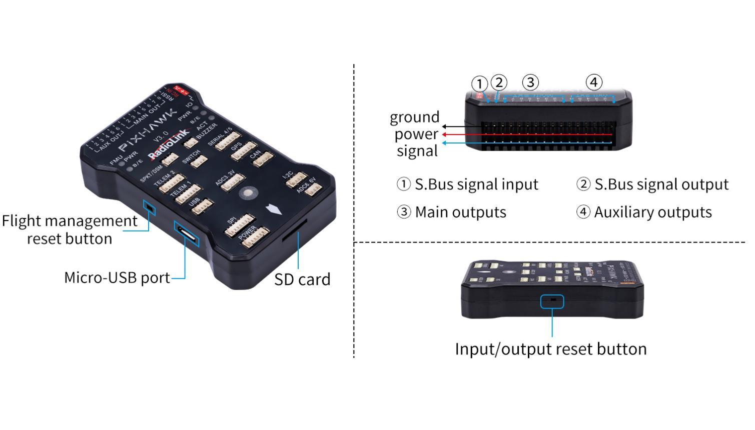This manual is based on the ARDUPILOT, with setting with RadioLink transmitter AT9S as example. More details about how to use flight controller PIXHAWK-series please refer to: