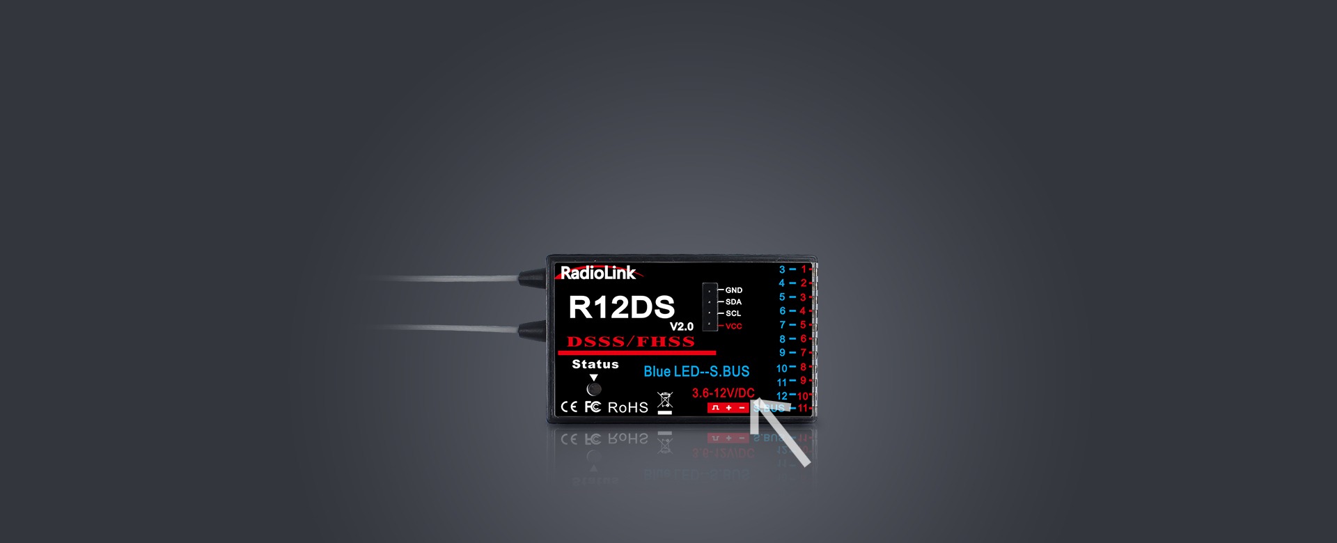 温馨提示:可输出多少通道的PWM信号取决于您已经使用了几通道的SBUS信号,比如您已经使用了4个通道的SBUS信号,则R12DS还剩余8个通道的PWM信号可用)。