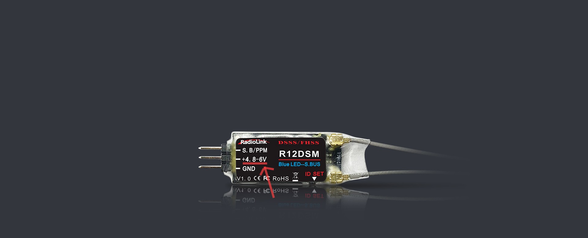 一秒内短按接收机侧面的(ID SET)开关两次,完成R12DSM的SBUS和PPM信号的切换。