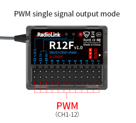 CH1 to CH11 output PWM signal output while CH12 outputs SBUS signal.