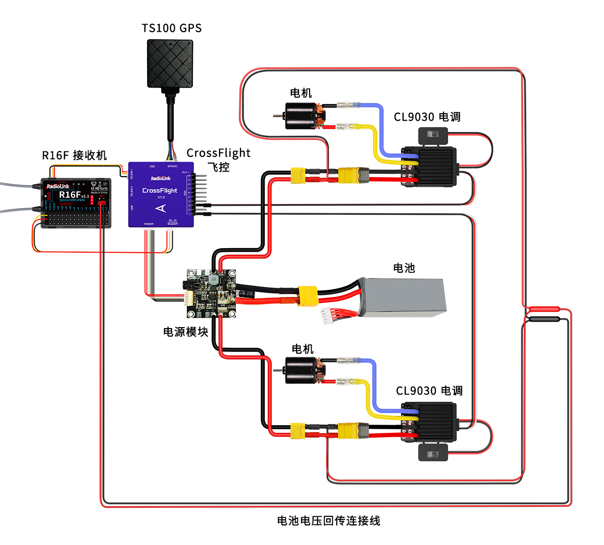 用户根据需要选择单PWM信号输出模式或者PWM+SBUS双信号输出模式,结合飞控实现打窝船远航、模型车FPV趣味竞赛或者固定翼远航等。