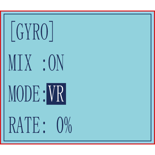 When MIX set OFF, gyro is disabled while when MIX set ON, you can adjust gyro sensitivity STD or VR. STD is adjusted on screen and VR is default CH3.