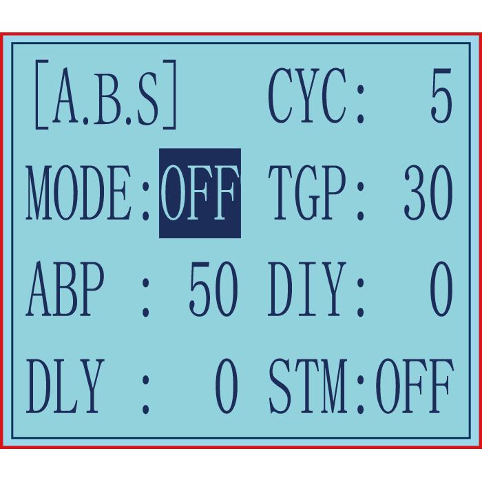 When steering mixing is set and steering operation enters the set range, "*" is displayed in front of the number. When mixing is OFF, the A.B.S function can operate over the entire steering range.
