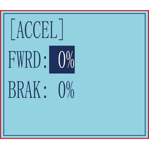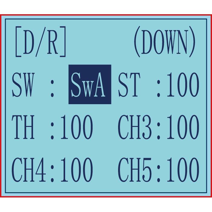 Select the setting item "RGHT", "BRAK", or "DOWN"(These setup items are different depend on the master channel.ST:"RGHT"; TH:"BRAK";CH3:"DOWN") by pressing “Dec(-)” or “Inc(+)” button.