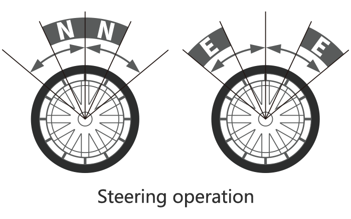 "100%": Maximum acceleration(Approximately1/2of the forward side steering angle)
