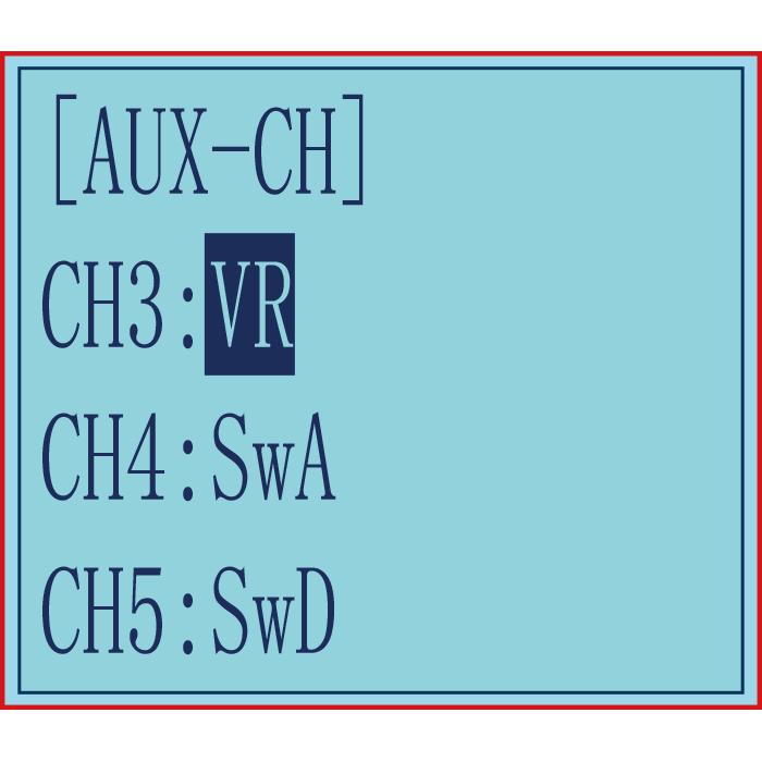 The control switch of the auxiliary channel can be selected as ST(steering), TH(throttle), VR, SwA, SwD, LK-A, LK-D, NULL.(For more details of all switches, please refer to Chapter 1.1.4 Switch/Button Introduction)