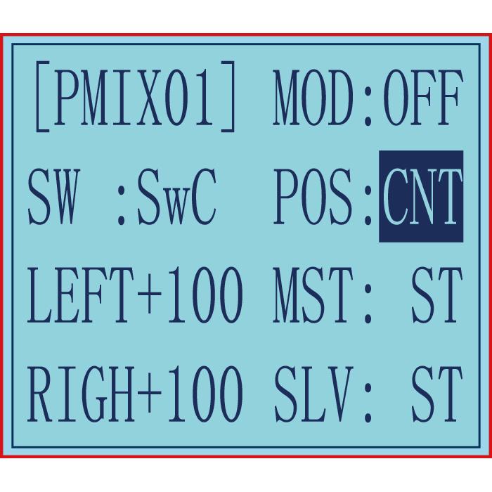 Select the setting item "LEFT", "FWRD", or "UP"(These setup items are different depend on the master channel. ST: "LEFT"; TH: "FWRD"; CH3:"UP") by pressing “Dec(-)” or “Inc(+)” button.