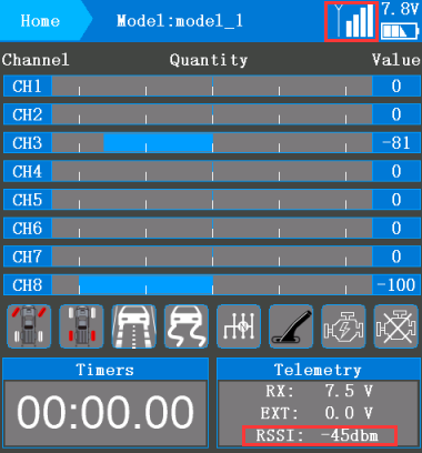 Real-time built-in telemetry of model battery voltage, RSSI, and receiver voltage