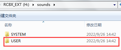 Please refer to 2.8.2 SD Card Files Copy Methods to copy the modified audio to RC8X_EXT(H) -sounds-USER. (The file name is "Test")