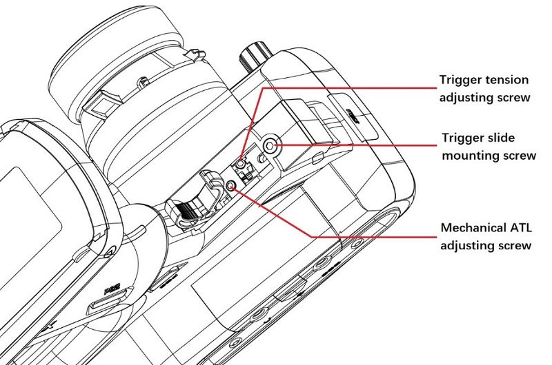 Adjustment steps: Using a 2.0mm hex wrench, loosen the trigger slide mounting screw (2.0mm) by turning it slightly counterclockwise. If the trigger slide screw is turned too much, the screw may fall out.