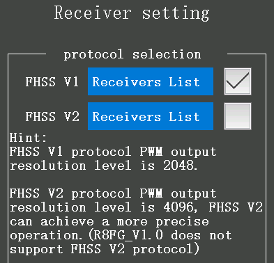 Not only is the voice package that comes with RC8X but also the customized voice is available for the user to set the Audio source. Users can make custom prompt voice production through text-to-speech software, and then copy the voice file to the transmitter, where they can choose their own voice. It is specially designed for users in non-English language countries.