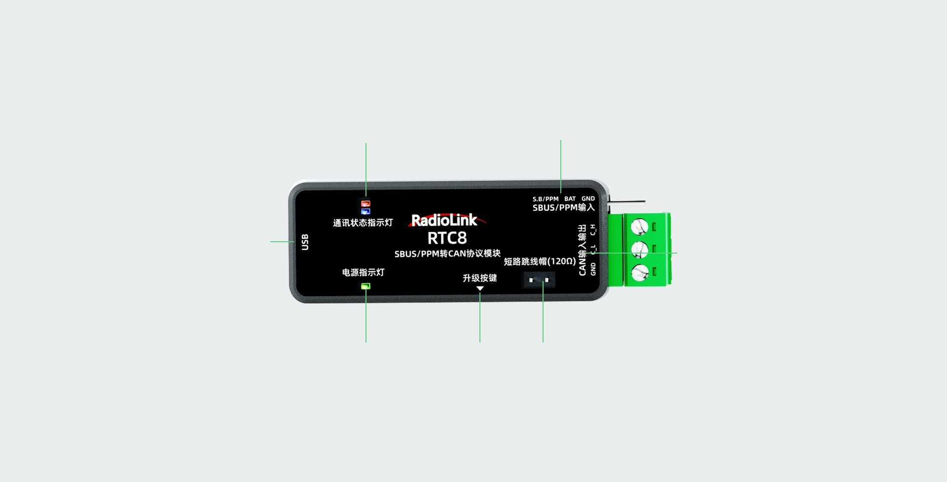 支持遥控器SBUS和PPM信号自动识别转换,适用于绝大多数遥控器。相比单一SBUS协议转换模块极大扩展了遥控器选择范围。
