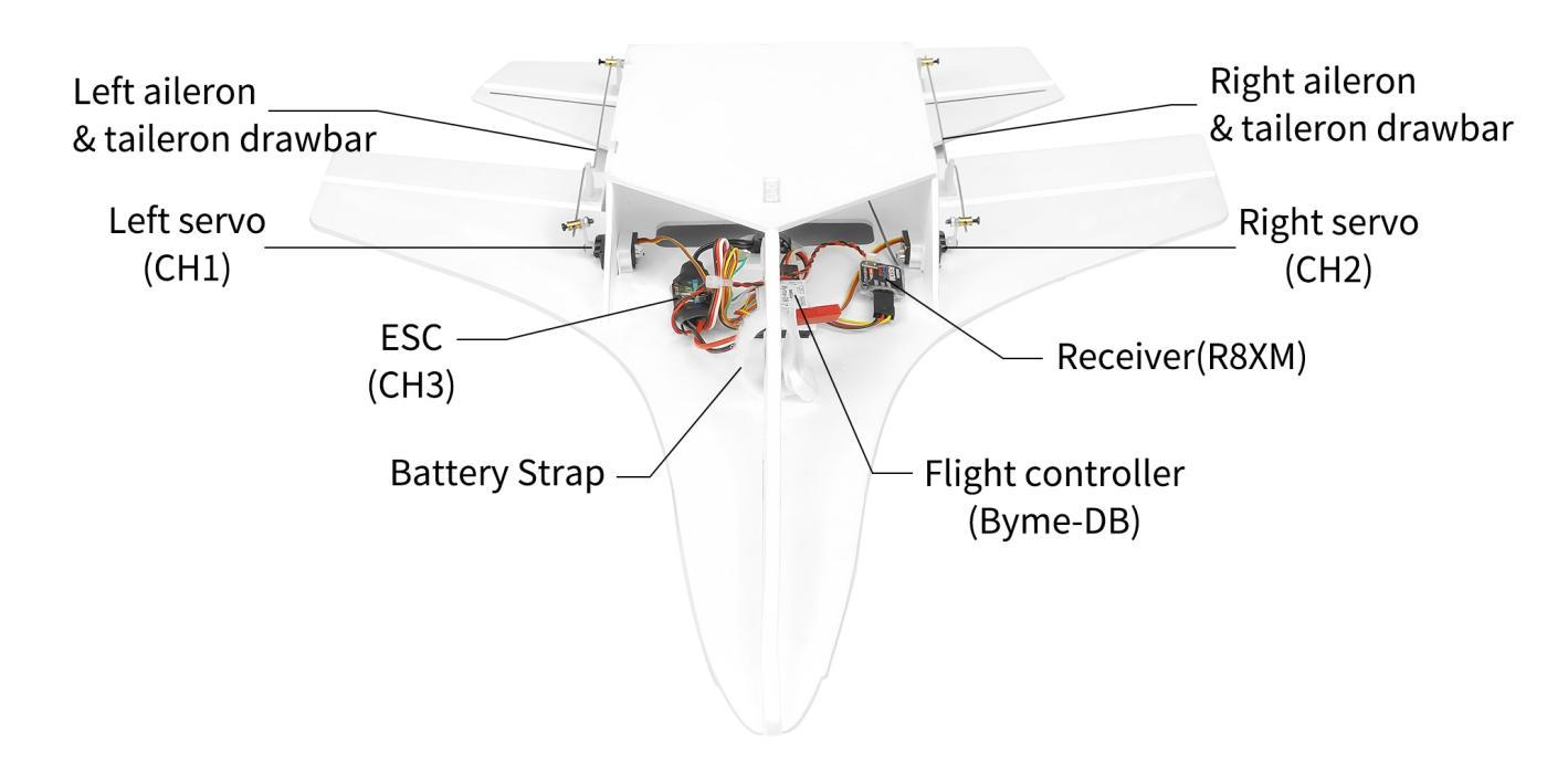 Note: Do not set any mixing in the transmitter when Byme-DB is mounted on the aircraft. Because there is already the mixing in Byme-DB. The mix control will automatically take effects according to the flight mode of the aircraft. If the mixing function is set in the transmitter, there will be conflicts of mixing and affect the flight.
