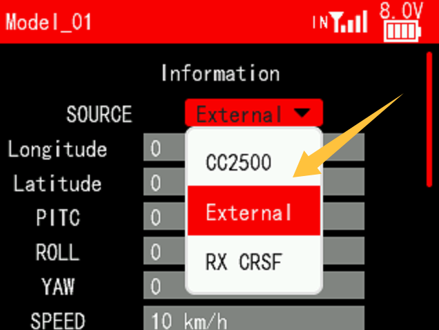 A: Please select External on the telemetry information menu of T16D/T12D: