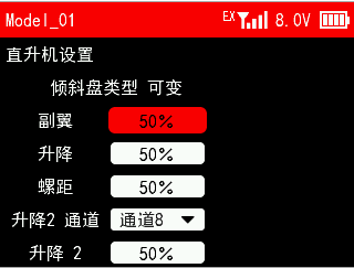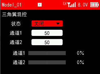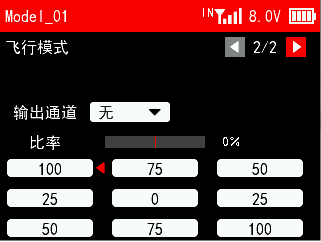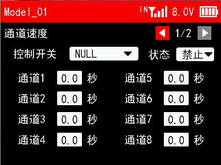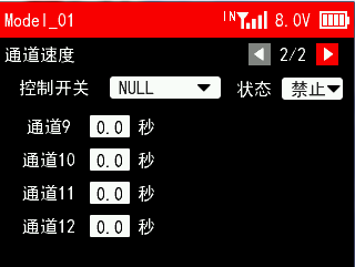 响应速度:舵机响应速度。可选择14ms,4ms,3ms。14ms为模拟舵机响应速度,4ms和3ms为数字舵机响应速度。如果您使用的是数字舵机,需要选择4ms或3ms响应速度,请确认所使用的接收机是否支持数字舵机。