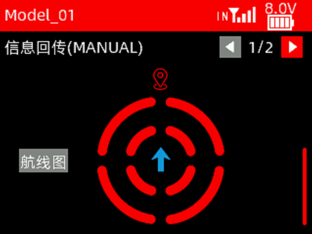 回传信息 | 与R16F接收机、飞控和GPS一起使用时,可实时回传经纬度、距离、卫星数、航向等信息 |